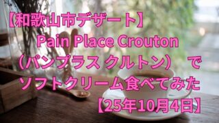 カフェ 【和歌山市デザート】Pain Place Crouton(パンプラス クルトン)でソフトクリーム食べてみた【25年10月4日訪問】 和歌山市のソフトクリームをお探しの方、今回は「Pain Place Crouton(パンプラス クルトン)」に行ってきました。この記事では、上記店舗へ行った際の店舗情報・感想をご紹介します。はじめに:和歌山市のカフェ巡りを検討している皆様へ... 2025.10.11 カフェ